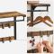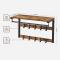 Conçu avec un cadre robuste en métal et des panneaux d'aggloméré résistants, il offre une bonne solidité : la planche supporte jusqu'à 16 kg, chaque crochet jusqu'à 4 kg et la tringle jusqu'à 20 kg. Ce mélange de bois marron rustique et de métal noir apporte également un style industriel qui s'intègre facilement dans une entrée, une chambre ou même un bureau.
