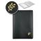 Porte-papiers en cuir noir, avec Branche d'acacia dorée.