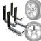 Chaque support de pneus fabriqué en acier inoxydable solide a les dimensions suivantes: Longueur 10,5 cm, hauteur 10 cm avec une coupe transversale de 5 x 20 mm.