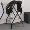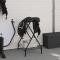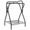 Porte-selle pliable autoportant noir ferCe porte-selle pliable est une très belle pièce à utiliser dans les selleries ou lors de concours hippiques. Construction durable et robuste : ce porte-selle est fabriqué en fer thermolaqué, ce qui le rend robuste et robuste. Il assure une longue durée de vie et peut résister à l'usure d'une utilisation quotidienne. Beaucoup d'espace : le support de selle avec étagère inférieure offre un espace suffisant pour ranger votre matériel d'équitation. Facile à ranger : le porte-selle peut être plié à plat lorsqu'il n'est pas utilisé pour plus de sécurité et pour économiser de l'espace. Nombreuses utilisations : ce support de selle de cheval convient à une utilisation dans des environnements commerciaux et personnels, et il est parfait pour organiser votre sellerie, votre grange ou votre écurie.