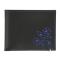 Cet accessoire se compose d'une surface en cuir noir embossé d'un beau relief de fleur de lys bleue.