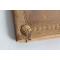 Portefeuille en cuir, décor en laiton ajouré et portrait émaillé sur cuivre bombé