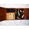 Portefeuille pour le rangement de vos leurres, en cuir à tannage végétal de belle fabrication d'artisan avec estampage truite et finition granitée; possibilité de mettre une étiquette cuir rivetée pour initiales (les initiales seront gravées après l'achat) sans surcout. A l'intérieur se trouve 1 sachet en toile pour les leurres non montés, 1 plaque néoprène de 3x8cm pour les têtes plombées et 1 plaque néoprène de 8x10cm pour accrocher les leurres montés, les cuillers.. . Fermeture par pression. Finition avec teinte naturelle et cire d'abeille.