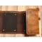 Portefeuille à mouche en cuir à tannage végétal de belle fabrication d'artisan avec estampage truite et finition lisse et étiquette cuir rivetée pour initiales (les initiales seront gravées après l'achat sans surcout). 2 plaques néoprène de 8x10cm à l'intérieur pour accrocher les mouches. Fermeture par pression. Finition avec teinte naturelle et cire d'abeille.