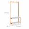 Dimensions H x L x P : env. 150 x 70,5 x 30 cm Pèse env. 7 kg Crochets avec capacité de charge max. 20 kg Etagères avec capacité de charge max. 15 kg En bambou et MDF En nature et blanc Meuble à chaussures et portemanteau tout en un Dimensions du banc L x P : env. 70 x 30 cm Dimensions de l'étagère à chaussures L x P : env. 67 x 30 cm Espace entre les étagères : env. 26,5 cm Espace entre le banc et les crochets : env. 99 cm