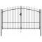 Portillon double porte avec dessus à pointe Acier 3x1,75 m NoirCe portail de jardin formera une barrière pratique et en style contemporain, qui séparera votre jardin du monde extérieur. Très stable et durable, le portail de clôture offre une barrière de jardin pratique pour votre jardin, terrasse ou patio. Avec des barres verticales surmontées de pointes de lance et un renfort horizontal solide comme renfort, notre porte de jardin offrira un degré élevé d'intimité et de sécurité, tout en formant une entrée fabuleuse à votre propriété. Fabriqué en acier robuste, le portail est enduit de poudre pour protéger contre la rouille et la corrosion. Le portail vient également avec une charnière à boulon pour le verrouillage rapide et des poteaux de support pour l'installation facile. 3 clés assorties sont également incluses dans la livraison. Ce portail est une excellente combinaison de style, de résistance, de stabilité et de résistance à la corrosion !