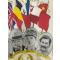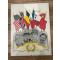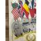 Encadré sous verre représentant les portraits de Roosevelt, Churchill, De Gaulle et Staline devant les drapeaux de leurs nations respectives entourant un V de la victoire.