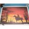 Voici un poster en papier mat d'un cowboy devant un couché de soleil  !