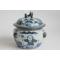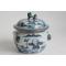 Ancien pot couvert en céramique craquelée bleu blanc, Chine