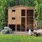 Accessoires : 3 pondoirs par étage avec accès extérieur, une rampe de sortie, 2 perchoirs dans l'enclos avec planche à déjections PVC