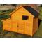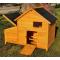 Une échelle à l’avant et à l’arrière du poulailler donne accès à un chaleureux abri surélevé, équipé de deux perchoirs et d’un pondoir accessible de l’extérieur