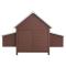 Poulailler Marron 157x97x110 cm BoisCe joli poulailler en bois est un choix parfait pour nourrir vos poules et les garder à l'aise. Le poulailler a été conçu avec une fenêtre à l'avant pour permettre à l'air frais de circuler. Elle comporte deux nichoirs, tous deux avec un toit qui peut être ouvert pour ramasser des oeufs. Le bac inférieur peut être retiré pour un nettoyage facile. La porte est verrouillable depuis l'extérieur avec un loquet. Fait en pinède de haute qualité, le poulailler est durable. Le tissu vert étanche sur les toits protège de la pluie, créant des endroits chauds et confortables pour se reposer à l'intérieur de la cabane.