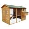 Matériaux très robustes : pin traité, grillage en maille d’acier galvanisé soudé, toiture goudronnée… garantissant une excellente longévité à votre poulailler en toutes conditions climatiques
