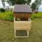 Vous y retrouverez également un joli toit en shingle (goudron) avec effet ardoise qui protégera un peu plus le bois de cette maison pour poules tout en facilitant l'écoulement de l'eau grâce à l'inclinaison de ce dernier