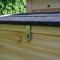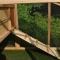 Le toit protégeant la partie nuit du poulailler a été renforcé à l'aide de shingle (goudron), pour ainsi éviter toute infiltration de l'humidité, tout en assurant un meilleur écoulement de l'eau grâce à son inclinaison