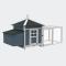 Ce poulailler est très pratique (abri et enclos extérieur, nichoir) convient à des races de taille petite ou moyenne, comme par ex. les lapins, les poules, les cochons d'Inde ou hamsters