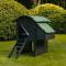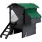 Ce poulailler de taille moyenne (d'une capacité allant jusqu'à 5 poules de taille standard ou jusqu'à 9 poules naines) est équipé de deux perchoirs et deux pondoirs.
