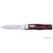 - **Manche ergonomique en bois stabilisé** : Avec une longueur de 13 cm, le manche en bois stabilisé rouge/noir offre une prise en main confortable et sûre. Son design raffiné, agrémenté de lignes décoratives, fait de ce couteau un véritable objet de collection.
