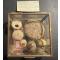 Préhistoire Tardenoisien (17K-15k avant J-C) - Bolas en granit ou projectiles utilisés pour la chasse : 3 pierres rondes, 1 pierre ovale, 1 pierre percée et 1 pierre plate - Objets trouvés parmi les silex taillés du gisement Bois des Pins (forêt de Nemours). Objets en granit étrangers à la région, où les silex sont tous taillés à partir des galets du cours d'eau du Loing - Gisement exploité par tamisage, documenté dans les Éditions Persée - Livraison au choix, avec ou sans coffret en verre et laiton.