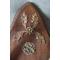 Belle présentation de deux pieds d honneur et bois de chevreuil , garniture en métal repousse sur bois de chêne .jamais vu cet ensemble sur le site .