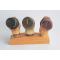 Présentoir avec 3 Ancien bouchons à système en bois sculpté