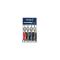 Le présentoir contient 9 couteaux de chaque couleur : bleu, rouge, noir et kaki.
