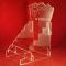 Je vous propose ce présentoir, conçu et réalisé par mes soins, en plexi de 4mm incolore. L'ensemble, livré à plat, se compose de 2 montants et 3 entretoises dont une décorée. le tout se monte par emboitement simple, sans colle, et est démontable. Pour éviter les rayures pendant la livraison, je laisse la pellicule de protection sur le plexi.