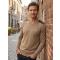 Pull Col V Homme Winchester Panel1 Beige avec Renforts Suédine