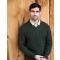 Pull col châle vert forêt, en 100 % laine mérinos fabriqué en Irlande. Chaud, doux, élégant et disponible du S au 2XL.