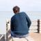 100% en laine mérinos - ce pull chaud homme pèse 710g en taille M.