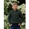Pull en pure laine mérinos, vert forêt avec Col camionneur zippé. Chaud et élégant. Tailles dès 2/3 ans, fabrication irlandaise.