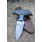 Couteau Push Dagger Damas 256 Couches à lame fixe - Longueur totale 15.5cm - Longueur de lame 9.5cm - Longueur du manche 10cm - Tranchant 8cm - Lame en acier damas 256 couches - Construction d'une seule pièce - Plaquettes du manche en bois - Mitres en résine - Full Tang - Etui cuir