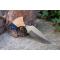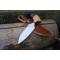 Couteau Push Dagger Damas à lame fixe - Longueur totale 15.5cm - Longueur de lame 11cm - Longueur du manche 6.5cm - Tranchant 9cm - Lame en acier carbone 1055 - Construction d'une seule pièce - Plaquettes du manche en bois - Full Tang - Etui simili cuir