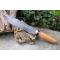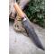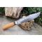 Longueur du manche 12cm - Longueur de la lame 19cm - Tranchant de 16.5cm - Lame en Acier damas 256 couches - Lame de type clip point - Garde & pommeau en laiton - Manche en bois d'olivier - Fabrication Artisanale - Les dessins de la lame sont uniques comme une empreinte - Etui cuir