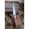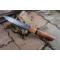 Longueur du manche 13cm - Longueur de la lame 15cm - Lame en Acier damas 256 couches - Lame de type drop point - Manche en bois de rose - Mitres en olivier - Fabrication Artisanale - Les dessins de la lame sont uniques comme une empreinte - Etui cuir
