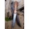 Puukko XXL Couteau Damas Lame 256 Couches Lame Drop Point Manche Bois de Rose Fabric Artisan Etui Cuir
