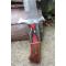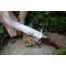 Longueur du manche 13.5cm - Longueur de la lame 25cm - Lame en Acier damas 256 couches - Lame de type tanto -Construction plate semelle - Garde en nickel - Manche en 2 bois - Fabrication Artisanale - Les dessins de la lame sont uniques comme une empreinte - Etui cuir