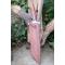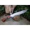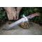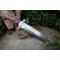 Longueur du manche 13.5cm - Longueur de la lame 25cm - Lame en Acier damas 256 couches - Lame de type tanto -Construction plate semelle - Garde en nickel - Manche en 2 bois - Fabrication Artisanale - Les dessins de la lame sont uniques comme une empreinte - Etui cuir