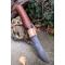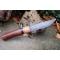 Longueur du manche 12.5cm - Longueur de la lame 13.5cm - Lame en Acier crabone 1075 - Lame de type drop point - Manche en bois de rose - Mitres en olivier - Fabrication Artisanale - Etui cuir