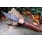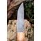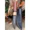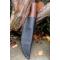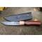 Puukko XXL Couteau Damas Lame Drop Point Acier Carbone 1075 Manche Bois Rose Fabr Artisan Etui Cuir