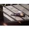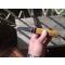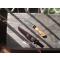 Très joli Puukko d'Artisan ,pièce unique,jamais servi ,comme neuf. Longueur de lame 8cm.pas de marquage.Une partie de la lame est brute noire.Longueur de lame 8cm.Epaisseur de lame3mm. Garde Hammered Nickel Silver ,martelé du côté de la lame .Manche avec intercalaires .Longueur totale 20,6cm. Fourreau en cuir épais de qualité.Regardez les photos,posez des questions retours refusé