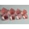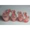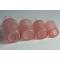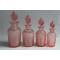 Suite de quatre flacons de toilette en verre moulé rose, décor pointes de diamants bouchons d'origines, numérotés d'époque 1900 bon état, sauf petits coups sur l'intérieur de deux bouchons, voir photos