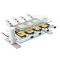 Légère et élégante avec son design épuré et graphique, la raclette 8 Transparence s'adapte aux grandes tablées. Esthétique, elle n'en est pas moins fonctionnelle avec ses plateaux en verre transparent ultra-résistant qui assurent un suivi parfait de la cuisson, tandis que son plateau inférieur accueille les poêlons pour faire une pause au cours du repas.
