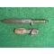 EN TRÉS BON ÉTAT LE FOURREAU D ORIGINE EST EN MATIERE PLASTIQUE , MAIS BEAUCOUP DE CEUX CI PROBABLEMENT DU A UNE UTILISATION SÉVÈRE FURENT REMPLACÉS PAR DES MODÈLES EN ACIER DE FABRICATION LOCALE CE QUI EST LE CAS A CELLE CI .