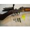 Très rare carabine BUFFALO EUREKA canon rond , qui comporte les deux canons lisses pour tirer des cartouches à grenaille (Commande spéciale à la MANUFACTURE ) .il y avait aussi la possibilité de commander les deux canons rayés . interieur des canons, le 9 un peu marqué et le 6 mm est très propre .ensemble tirable sans problème . exterieure culasse et canon ,vieux bronzage à 50.60% .belle plaque de couche fer bronzé tabac. Bois joli noyer presque sans tace de manipulation. par contre, crosse recollée dans le passé au niveau de la base de la culasse coté gauche .bonne reparation car rien ne bouge .. voir photo . carabine au meme n° .Bel ensemble pas courrant . ( les cartouches grenaille de la photo ne font pas parti de la vente )