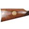 La crosse en noyer séléctionné possède les même agréments esthétiques que la longuesse. Son état est très bon, en ayant de très légères traces d'utilisation en son dessous. En revanche aucune marque profonde n'est à relever. La carabine a un médaillon doré incrusté. Ce médaillon est à l'effigie d'Oliver Winchester sur laquelle une plaque en relief est gravée Oliver F.Winchester 1810-1880. En arrière plan, vous retrouverez la gravure de l'usine originelle. La bordure du médaillon est élégamment gravée. Pour finir, la carabine possède sa plaque d'origine incurvée en acier, la plaque est en bon état général tout en ayant malheureusement une partie présentant d'ancienne piqures.