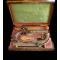 Outre les pistolets le coffret contient : Une boîte à amorce en loupe d’orme, un écouvillon en fer chromé et en forme de clé. Une petite brosse en bois et en ivoire munie d’une chaînette se terminant par une aiguille destinée à déboucher les cheminées, d’un maillet en bois, d’un huilier, d’un moule à balle au calibre des pistolets (12mm), d’une poire à poudre munie de son bec verseur automatique et décorée d’une méduse entourée de rayons de soleil. D’un tournevis, faisant également office de clé pour démonter les cheminées. Le couvercle de ce dernier se dévisse (éclat minuscule) et le manche contient une cheminée de réserve, une tige munie en son bout d’un mesureur à poudre et d’une seconde tige pousse balle, ainsi que d’un compartiment pour contenir ces dernières.