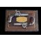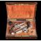 Coffret d’époque en excellent état dont le couvercle est garni d’un double liseré en laiton incrusté et d’un plaque octogonale destinée aux initiales. L’intérieur est garni de velours cramoisi. Ce coffret contient une boite à amorces en bois, le moule à balles au calibre de l’arme et dispose d’un petit compartiment pour les projectiles.