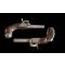 Canon damas, à l’embout fortement rayés, ornés d’une guirlande. Coffres gravés de motif végétaux. Crosse en loupe d’orme sans fêle ni manque, avec une pièce de pouce en métal argenté destiné à recevoir les initiales ou blason du propriétaire de ces très beaux pistolets. Calottes en métal ouvragé et pourvues d’un emplacement pour contenir les amorces.