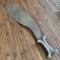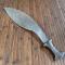 Rare COUTEAU à très forte lame tranchante forgé à feuille de saule de profil Khukukri. Ricasso gravée à l'argent de motifs floraux et Oiseaux, la poignée est incrustée d'argent à décor géométrique et de fleurs.